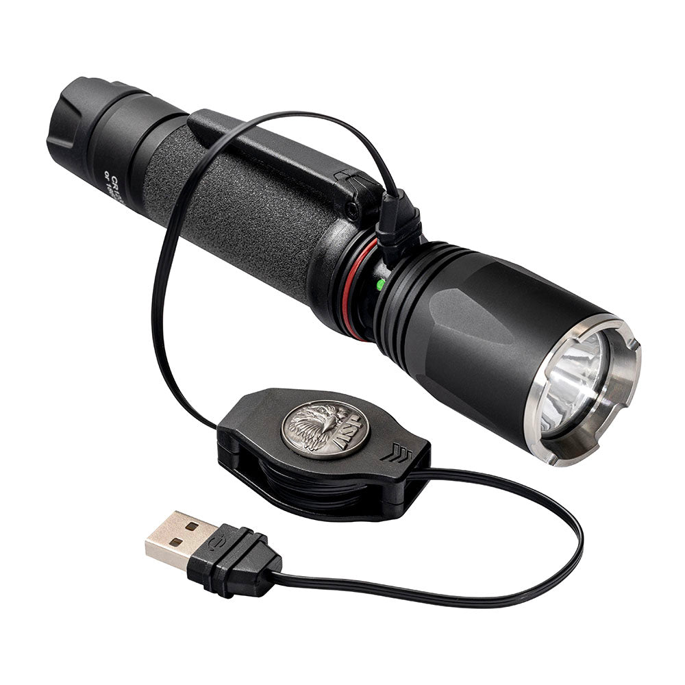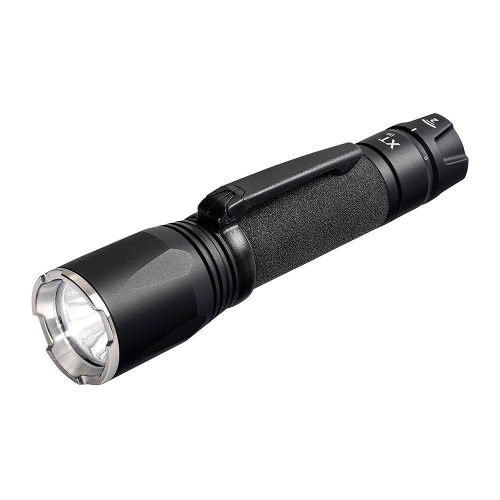 A 4-mode (high/medium/low/strobe) programmable duty light with Dual Fuel flexibility―runs on included 18650 rechargeable battery or optional CR123A primary cells.