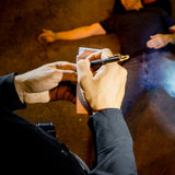 The core of the LockWrite is a precision, high density ink cartridge from Germany. Each LockWrite is packaged with a spare ink refill. The handcuff key of the LockWrite is produced from 4140 steel, the same alloy we use in ASP Batons. A matte black body is accented in Gold.