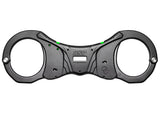 • Forged aluminum frame: Forged from 7075 T6 ordnance-grade aluminum, the Ultra Cuff frame is rigid and incredibly strong, yet lightweight. Forging—as opposed to the stamped steel parts found in other restraints—also eliminates rough or sharp edges; the smooth, rounded Ultra Cuff frame is more ergonomic, and safer for both officer and subject.