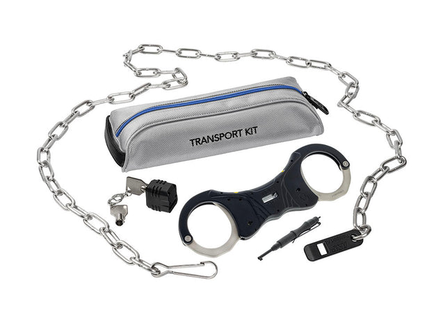The exclusive, efficient design of the Transport Kit allows the handcuffs to remain safely in place while the transport system is applied, adjusted or removed to prepare a subject for transport, booking or court. The chain version is ideal for corrections use, while the belt version, available here, is an option for applications like aviation security, where weight is a consideration. The belt version is also a good choice where the noise of a chain might be undesirable, such as in a courtroom.