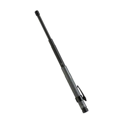 Other than the colored grip, this is identical to our standard Agent Airweight Baton. It incorporates a 4140 steel striking surface, with a forged 7075 T6 aluminum middle shaft and handle. The grip is fine line, Crosstec knurled with spiral micro grooves. Machined rings accept the included, adjustable Nexus baton clip.