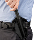 The scabbard is meticulously crafted of fine leather with topstitched finishing touches. Its tough, multi-layer construction holds the baton securely and will endure years of constant use. Slide-through slots accommodate belts up to 1.5” wide.