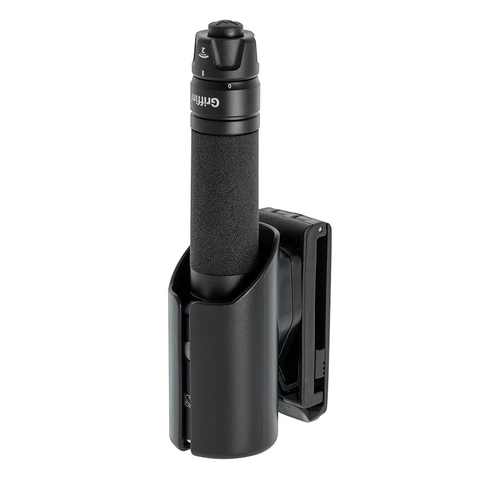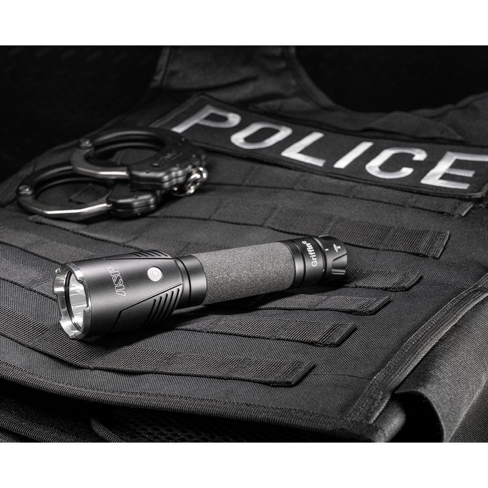 The Griffin is machined from 6061 T6 aerospace aluminum, type III hardcoat anodized in a proprietary matte black finish. The barrel is wrapped in our exclusive, all-weather foamed vinyl grip. Premium components include Cree XHP-70 LED, gold-plated connectors, polished aluminum reflector, optical glass lens and more. The Griffin is also compatible with our exclusive Tactical Light Case (sold separately), making it a versatile, hands-free illumination tool.