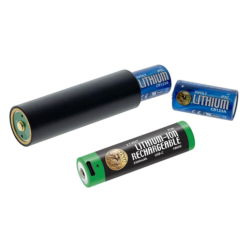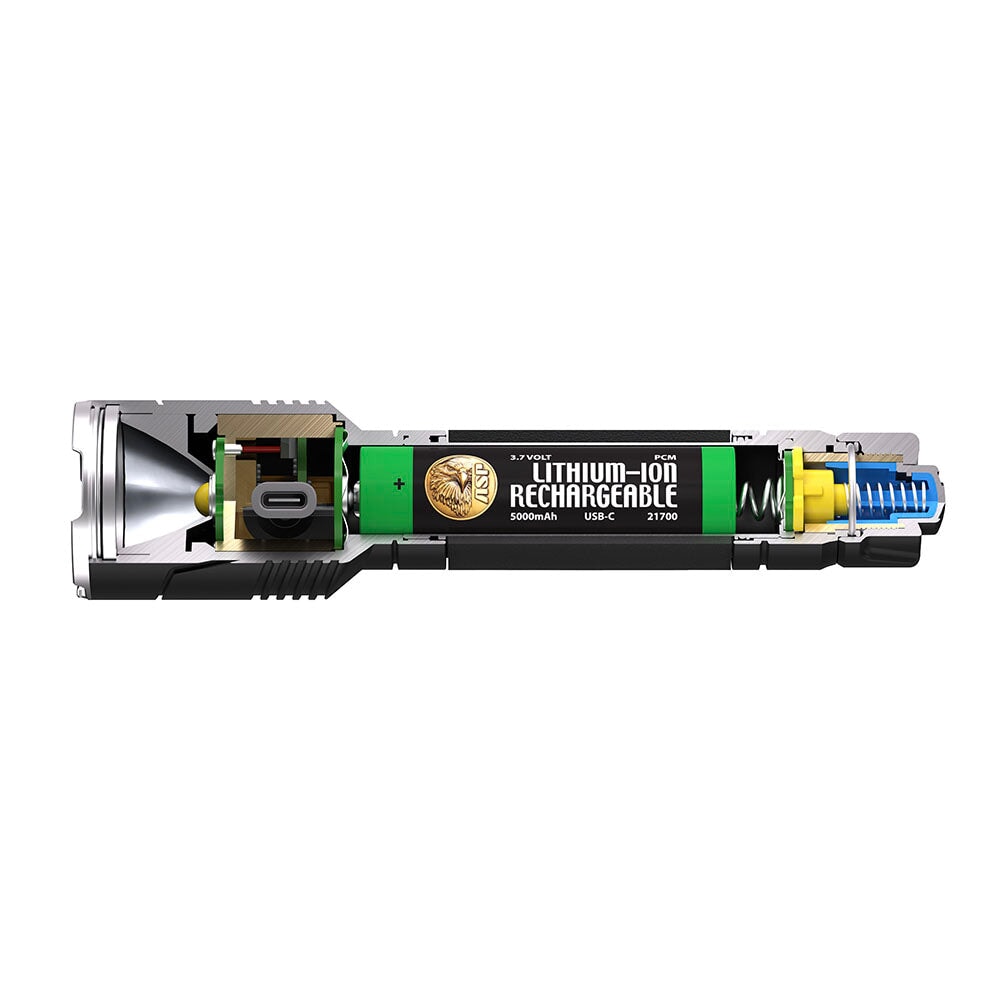 Includes high-performance ASP 21700 Lithium-Ion battery, battery storage case, adapter tube for optional battery sizes, and retractable charging cord.
