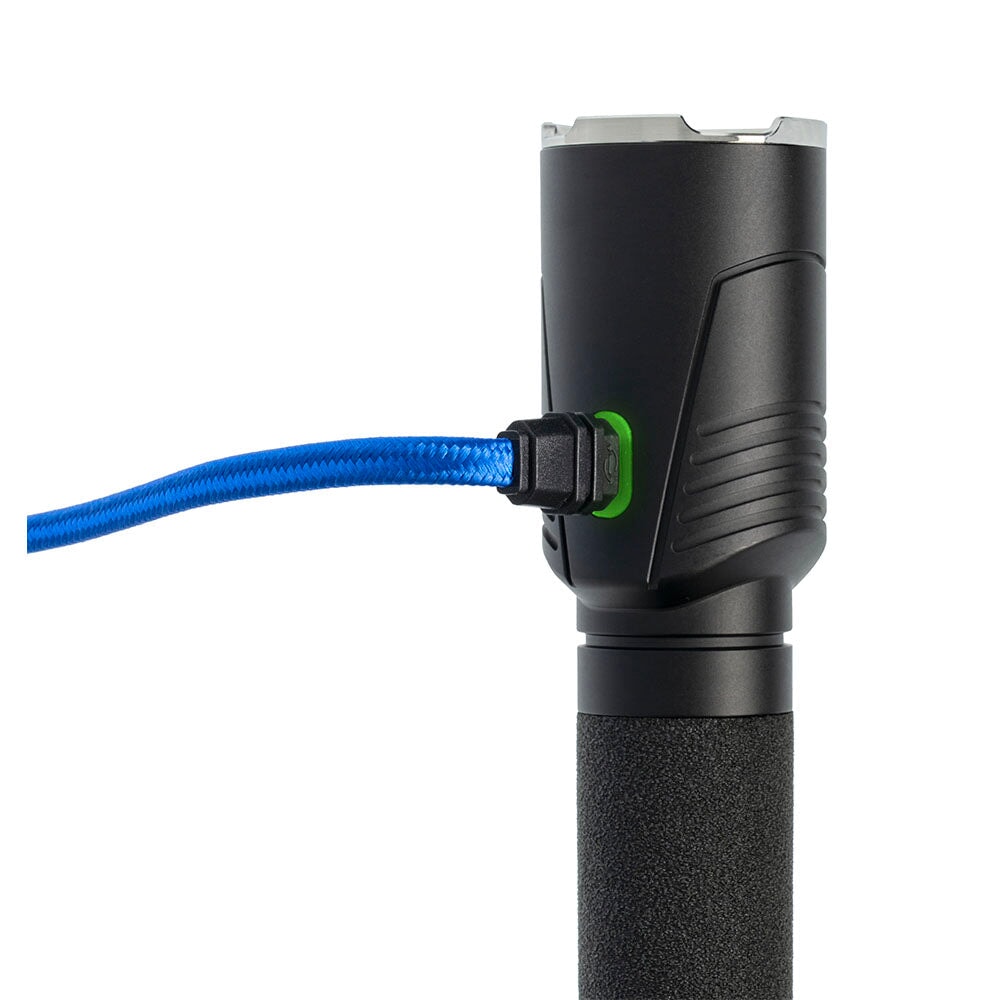 Tri-Fuel technology means you’ll never be without a power source―it runs with either a rechargeable 21700 battery (included), or optional 18650 rechargeable or CR123A primary (single use) cells. The 21700 battery charges inside the flashlight, using the supplied retractable cord, or any USB-C portable electronics charging cord―no separate battery charger needed. Onboard indicators display recharging status and remaining power capacity. In addition to in-light recharging, the battery can be charged on its own, simply by plugging the cord directly into the onboard USB-C port in the cell.