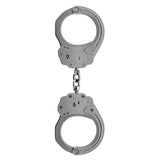 Sentry® Handcuffs feature I-beam inspired, rigid frames made of corrosion-resistant stainless steel with a beautiful and unique bead-blasted finish. The dimensional profile of the double bars provides strength without excessive bulk. This—combined with a precision roller bearing pivot and forged steel bow—yields a hitch-free, smooth swing. Unlike traditional stamped steel cuffs, the frame and bow are manufactured to eliminate sharp edges and rough surfaces. This reduces the risk of subject discomfort or injury—common causes of complaints and liability claims against police departments.