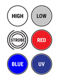• Lumens: 700 (high). Red, Blue, UV, Strobe, 25 low (programmable secondary)