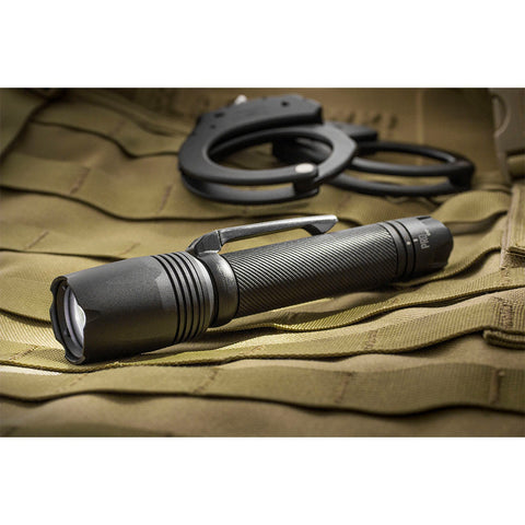 Includes high-performance ASP 18650 rechargeable battery, battery storage case, retractable charging cord and adjustable/removable pocket clip.