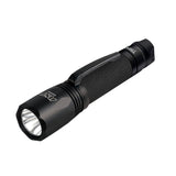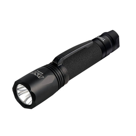 The Triad is machined from 6061 T6 aerospace aluminum and type III hardcoat anodized in a proprietary matte black finish. The barrel is wrapped in our exclusive, all-weather foamed vinyl grip. Premium components include Cree XPG LED, gold-plated connectors, polished aluminum reflector and optical glass lens. In keeping with our emphasis on intuitive design and simplicity in our law enforcement tools and training, activation of the Triad is via a single pressure switch. A 3-position twist selector allows choice of intermittent, constant-on, or locked.